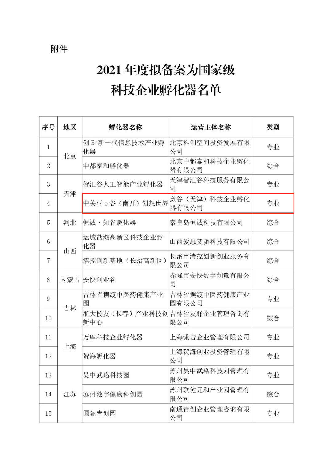 科技部火炬中心2021年度拟备案为国家级科技企业孵化器的名单已公示,共有149家机构拟备案为国家级科技企业孵化器。其中,中关村e谷的中关村e谷(南开)创想世界、意谷创业孵化器、中关村e谷(南阳)软件创业基地榜上有名。