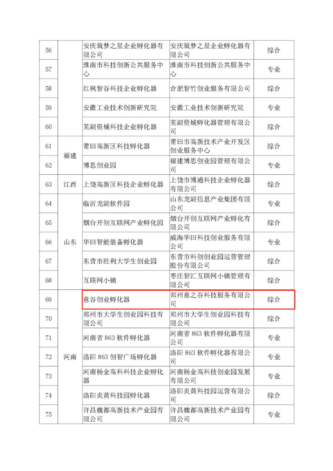 郑州 | 意谷创业孵化器 | 郑州意之谷科技服务有限公司 | 综合 |