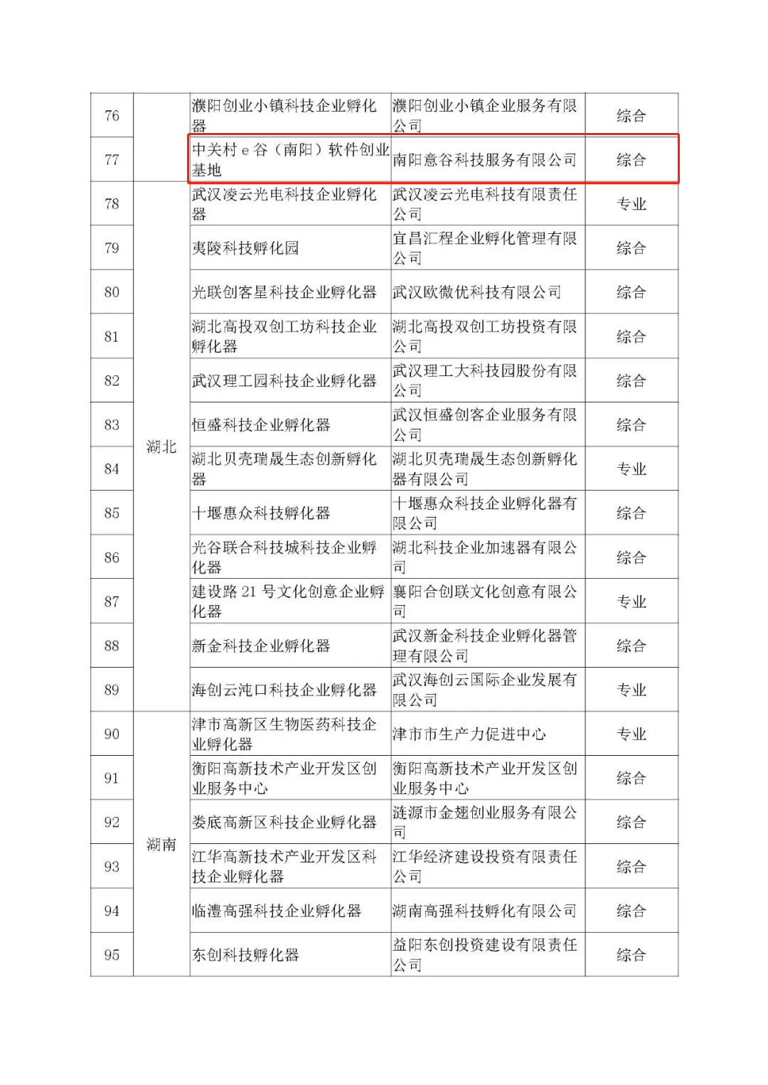 南阳 | 中关村e谷(南阳)软件创业基地 | 南阳意谷科技服务有限公司 | 综合 |