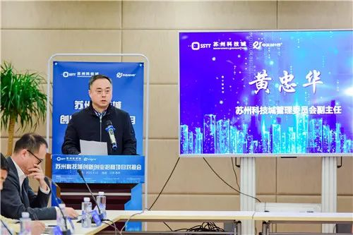 本次活动由中关村e谷副总裁柳永坡主持,会议伊始,苏州科技城管理委员会副主任黄忠华首先对与会嘉宾的到来表示热烈欢迎,并对科技城营商环境、科技引才政策做出整体介绍。