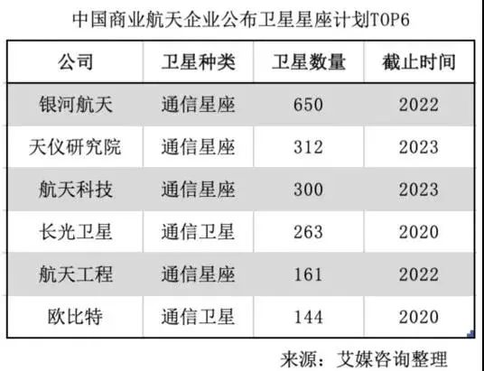 数千颗这还仅仅是“国家队”的数据,而中国商业航天企业TOP6公布的计划显示,在2023年之前,仅这六家企业计划发射的卫星就高达1830颗,其中绝大多数都属于标准的“小卫星”。