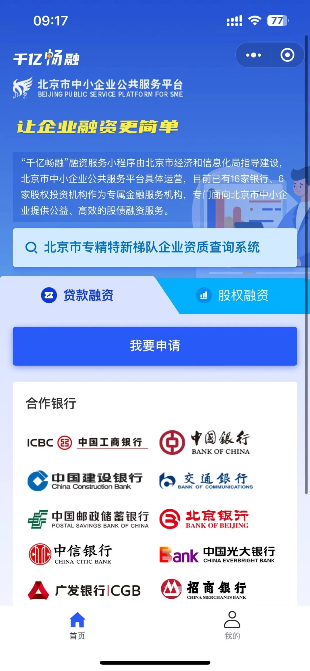 第一步:微信搜索“千亿畅融”小程序,点击“北京市专精特新梯队企业资质查询系统”