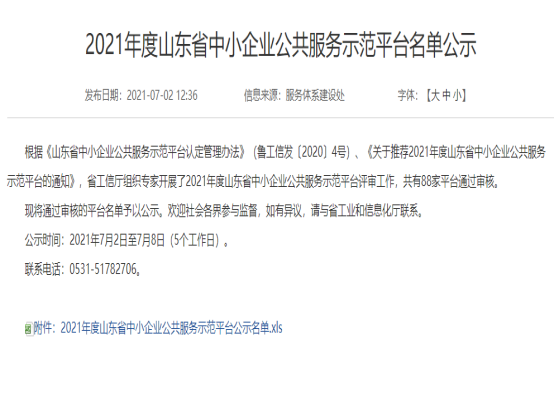 日前,山东省工信厅下发《2021年度山东省中小企业公共服务示范平台名单公示》,中关村e谷·齐河榜上有名。