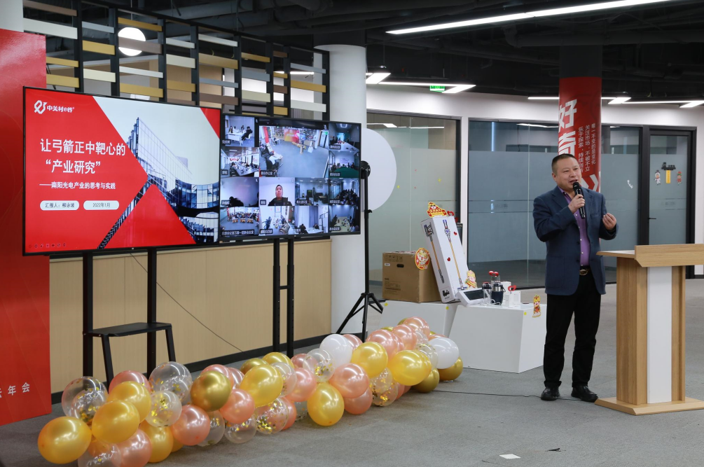 △柳总发表名为《让弓箭正中靶心的“产业研究”——南阳光电产业的思考与实践》的演讲