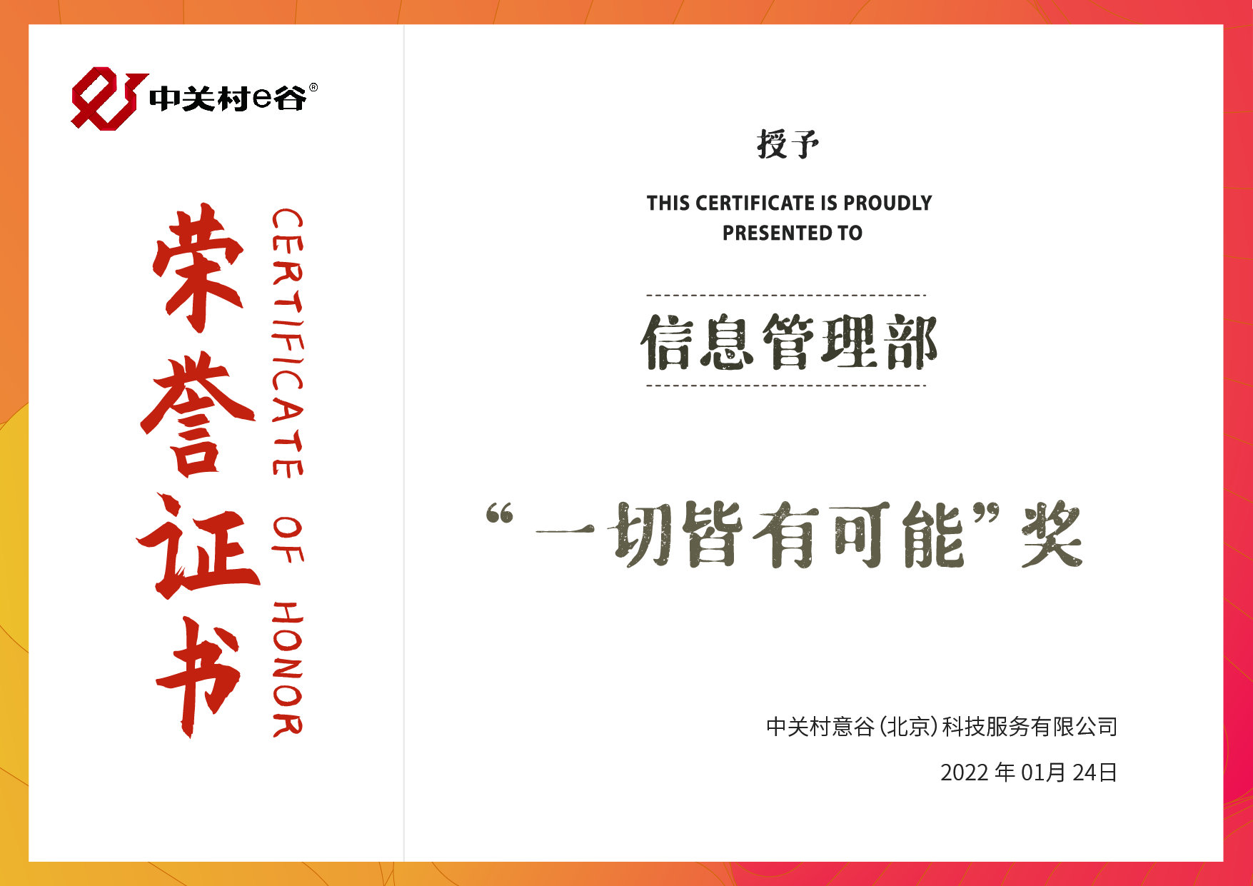 2022年1月24日,中关村e谷云年会盛典隆重举行,此次年会盛典通过全国视频会议系统进行同步直播,我们与各地的中关村e谷家人们进行实时联动,共贺新年。